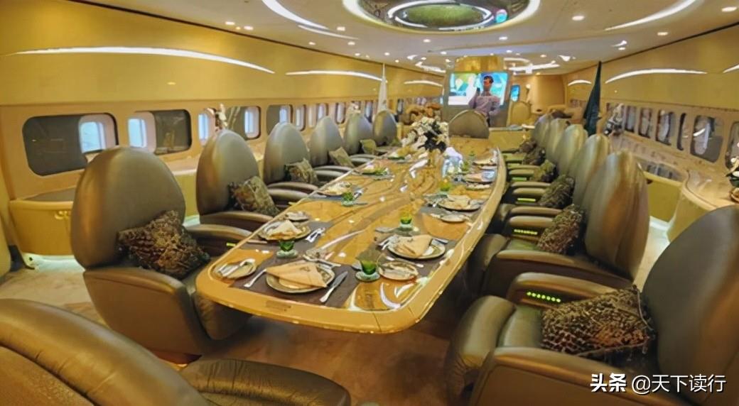 更让人叹为观止的是,他的专机装潢得金碧辉煌,从安全带扣到洗手间里的马桶,再到水龙头,全部都镀上一层厚厚的黄金。