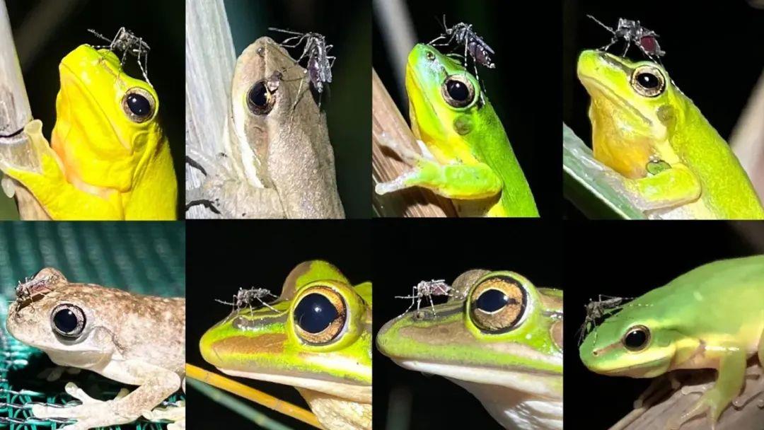 在最近发表的一项研究中,研究者们花了3年时间,追踪一种学名为Mimomyia elegans的蚊子,结果发现它们对青蛙的鼻孔情有独钟。在拍到的照片里,蚊子总是停在各种树蛙的鼻尖上疯狂吸血。