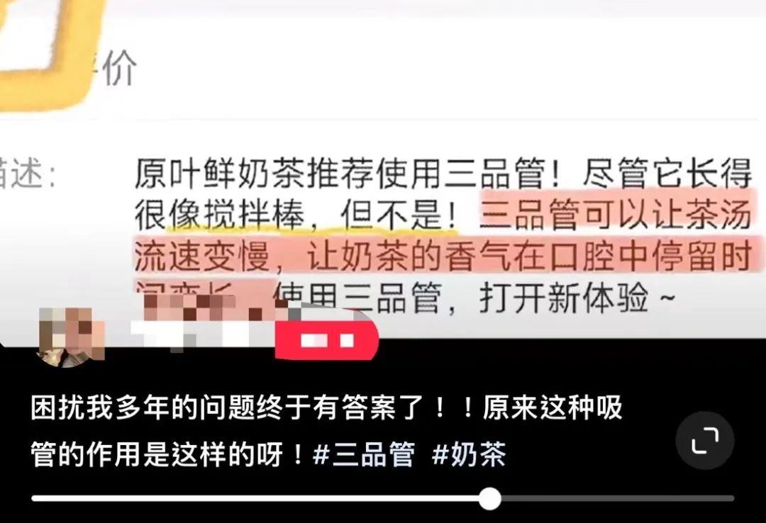 据商家的说法,这种吸管能让消费者品味到茶香,随便在网上一看,有不少关于“三品管”的讨论,有的说,这么小的吸管,喝起来真的很费力。而有人则说,用“三品管”喝的饮料的味道,似乎和用普通吸管真的不一样。