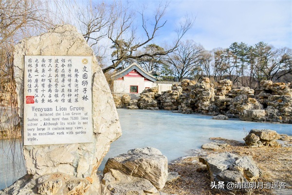 水心榭东原有仿苏州狮子林建的“文园狮子林”,内有十六景,玲珑秀丽,是山庄园中之园。