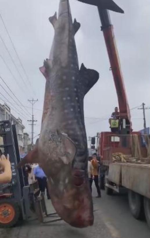 这两天热搜中的一条4吨重的鲨鱼在江苏吕四新港被捕捞,而且出水就已经死亡。