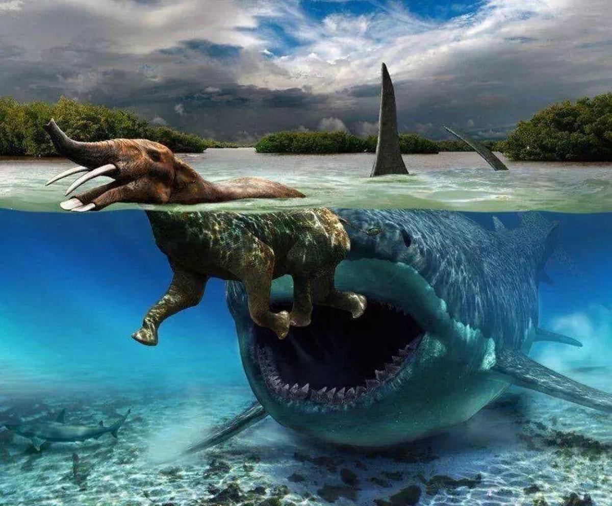 巨齿鲨最喜欢的猎物是当时的始祖鲸豚类生物,鲸豚类生物是哺乳动物,依然靠肺呼吸,当它们到海面换气时,便给了巨齿鲨可乘之机。