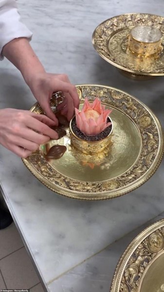 此外后厨也被给到了镜头,甜点师用翻糖制作了南非的国华-帝王花(Protea cynaroides),看着很是漂亮。