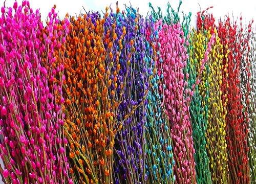 银柳它是一种防风固沙的植物,具有顽强的生命力,非常的耐盐碱、干旱。我们花市上见到的银柳枝条上,都是开着五颜六色的花苞。