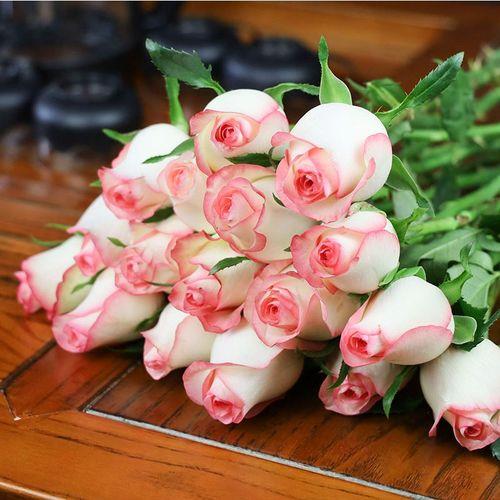 切花月季的花梗挺直、优美,并能达到一定长度,30cm以上,此外,它们花型优美,初开放时为高心卷边状和平头型两类,花谢时不漏心,花色鲜明,花色纯正、明快。