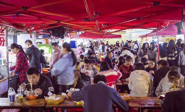 这里的小吃种类相当丰富,有上百家摊位,价格也很便宜。臭豆腐、梅花糕、炒冷面、螺蛳粉、麻辣烫……来自全国各地、五湖四海的美食汇聚于此,只要你能想得到的,这里都有。是的,这原本是一条并不算太长的街道,来来去去也不过几分钟的时间。然而,想要尝遍它却需要耗费整个青春。