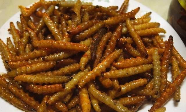 竹虫的食用方式也很多,不过最主要的就是直接油炸,先用上70℃的热水烫死,再进行控水,之后倒入油,炸上3分钟即可,等深黄色时即可捞出装盘。