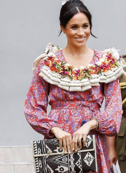梅根王妃新照片:一袭碎花长裙温婉典雅,这个被宠爱的女人很美