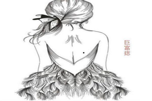 5、后背右边的肩胛骨。这痣在后背右边的肩胛骨下接近脊椎骨的位置,用自己左手能摸到右边肩胛骨突起的那段区域内。这痣可是非常大富大贵的痣,所以称为石崇巨富痣,石崇是西晋时期的大富巨富,好比现代社会里的首富,所以有这类痣无论女人或男人都是有很大福气和富贵藏身,女人多能靠不动产经营有方,财多福厚。来自星运密码
