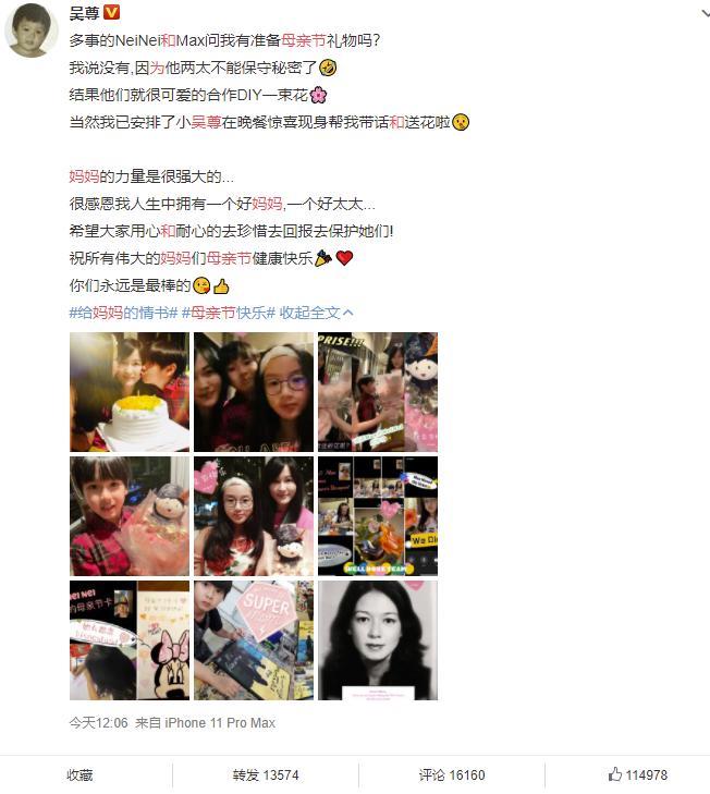 吴尊异地为老婆和妈妈过母亲节 网友:这大概就是绝世好男人了吧