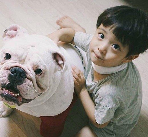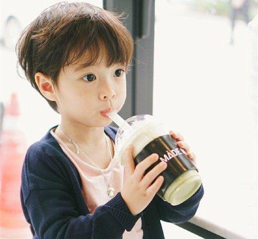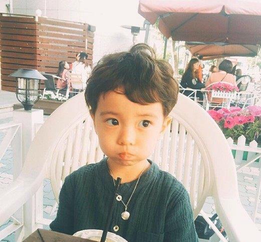 简约款黑色短发也非常可爱,特别适合男宝宝选择,头发乌黑又短短的,很有韩国小正太的感觉,配上嘟嘟小脸蛋,不让阿姨粉不喜欢都难。