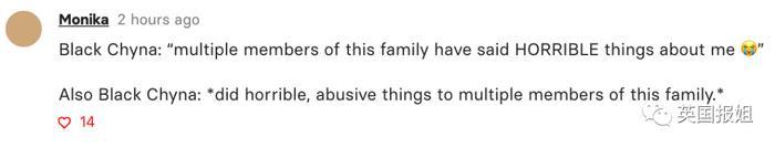 网友2:“查娜控诉:这家人说了我好多坏话。同样是查娜:对这家人实打实做了很多糟糕和虐待人的事情。”