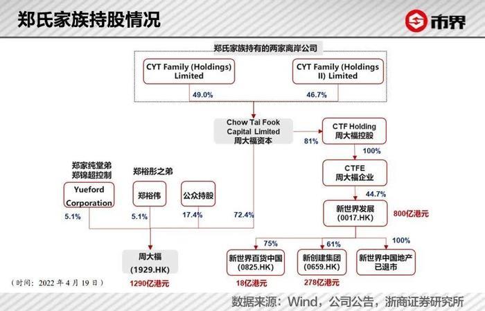 郑氏家族其他三家上市公司,也由周大福资本控股的周大福企业控股。