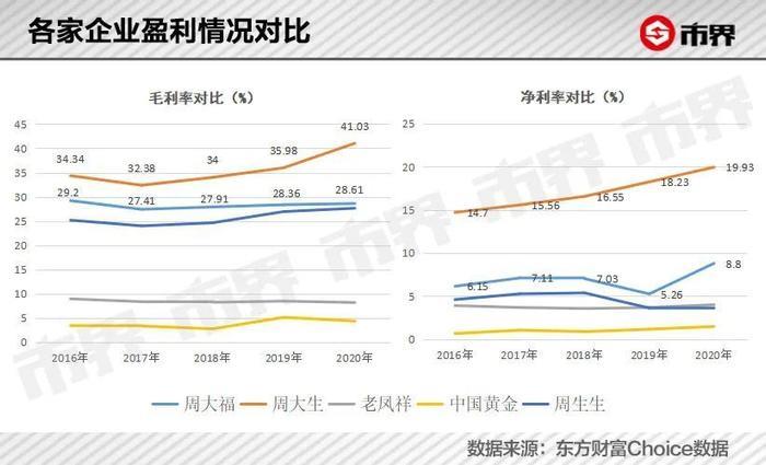 虽然规模大,但周大福的盈利能力却远低于内地珠宝品牌周大生。