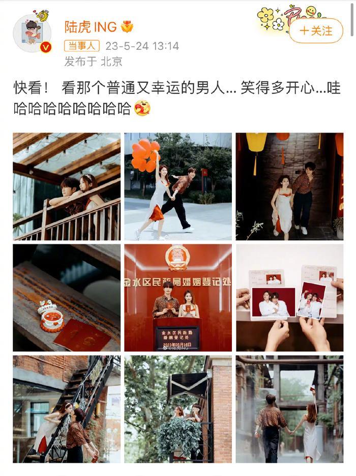 5月24日,陆虎甜蜜官宣结婚领证。在他的官宣微博下,“再就业男团”的几个好兄弟张远、苏醒、王铮亮都纷纷留下评论祝福。