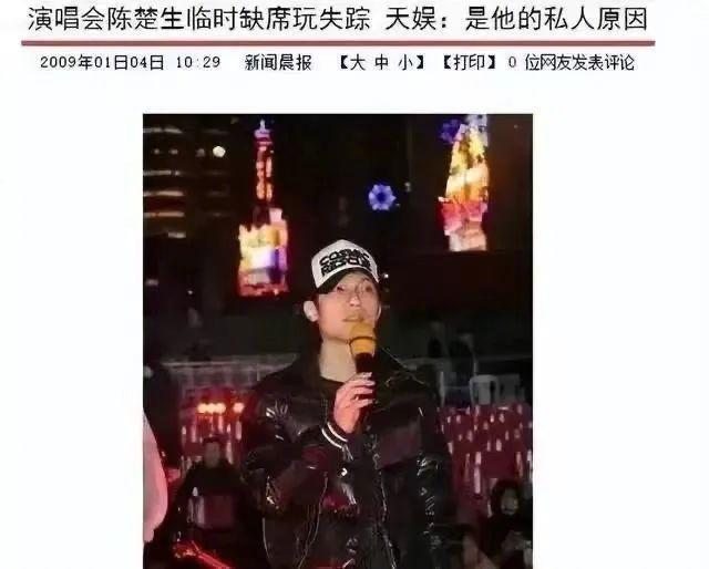 2008年底,陈楚生竟然临阵缺席当年的跨年晚会。这个大胆的举动,就此埋葬了他的事业。