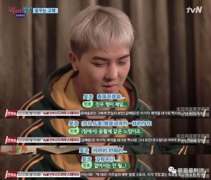 成为WINNER大概是金秦禹的新生。因为善良和责任感,我们看到了作为队内大哥金秦禹的担当。
