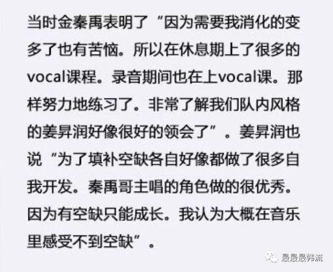 当组合面对瓶颈的时候,他上了很多vocal课程。只为把弟弟们创作的重担转化一些到自己身上。