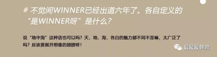 “在以前的一个采访中,我似乎用了‘地中海’来比喻我的成员们。对我来说能够遇到这样的弟弟们,是莫大的幸运。”