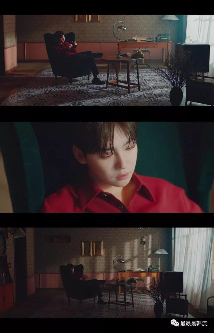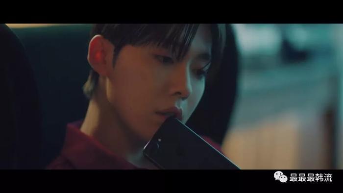 言归正传!mv开始,是握着手机不停打字后来却颓然放下手机的红衣金秦禹。