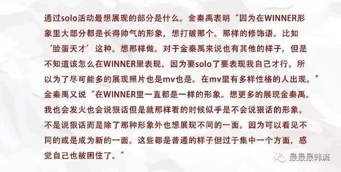 但金秦禹对于自己solo的要求是想要打破固有的刻板印象,给大家更多的展示不同的但也是普通人金秦禹的一面。