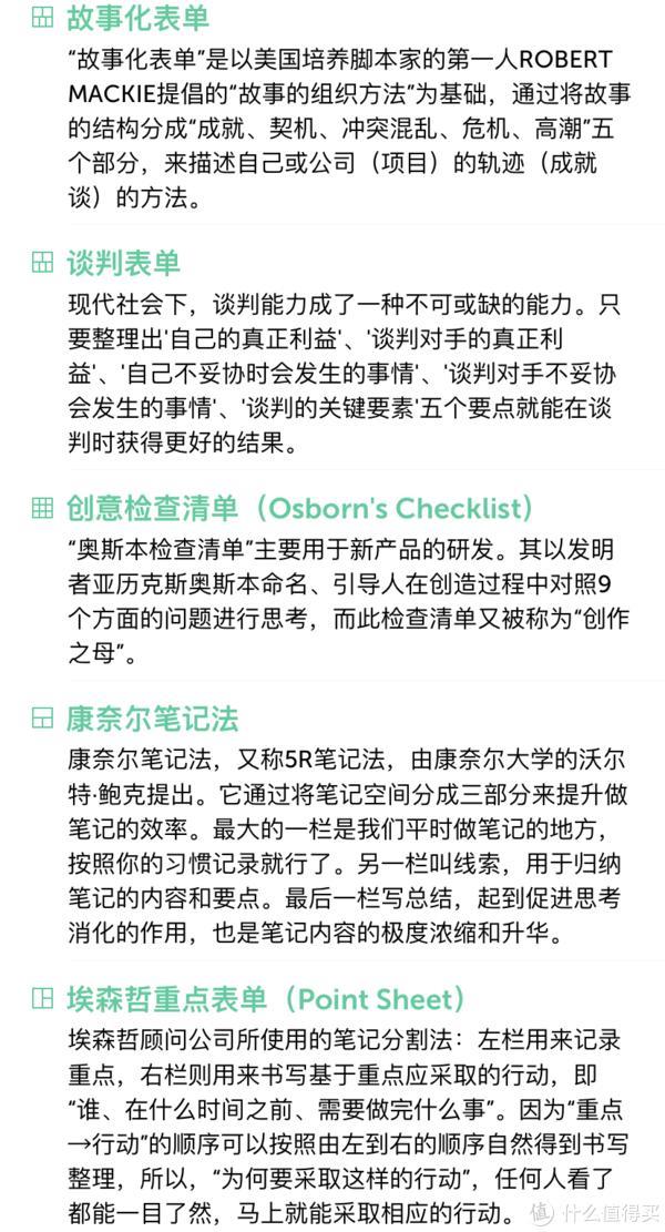 此外,格子笔记还提供康奈尔笔记法、埃森哲重点表单、麦肯锡空雨伞笔记、5W1H、SMART、OKR、PDCA、SWOT……等多种知名笔记模板:
