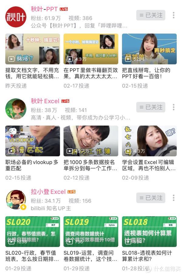 当然,你也可以专攻特定领域的知识,比如关注@秋叶-PPT 学习演示汇报、关注@秋叶Excel、@拉小登Excel 学习表格制作……