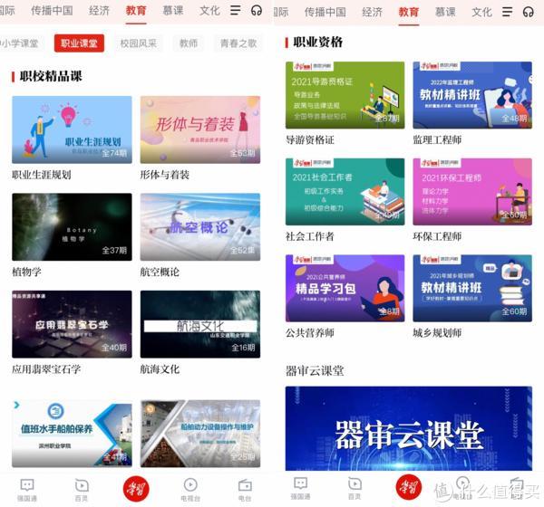 在“学习”-“教育”-“职业课堂”中,有各种职业资格考试的课程、实用职场技能: