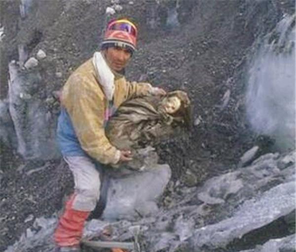 而且,这个女孩儿的皮肤也看起来十分的富有弹性,没有腐化的痕迹,而且她是在古墓中盘腿而坐,面部表情也十分的清晰可见。我们不知道这三个孩子生前受过怎样的悲惨遭遇,但是他们在如此年少的年纪就被冰封在此,不知是不是当年的人们对于神山的一种祭拜。