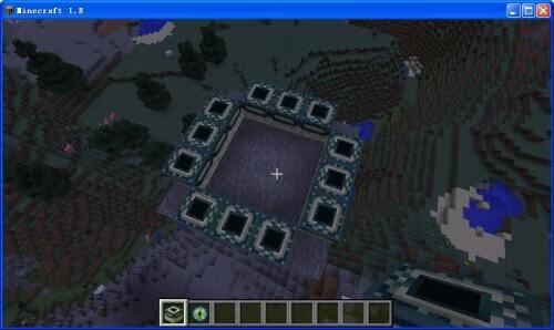 6.进入要塞后找到末影传送门,先把刷怪箱挖掉,然后将末影珍珠(需要十二个)放入末影传送门。传送门就启动了。