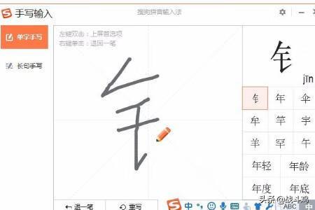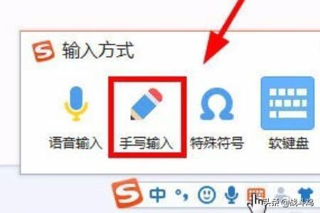 1、在收购输入法的面板上点击键盘,选择手写输入,如图所示