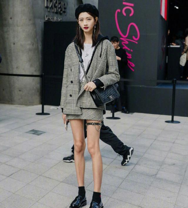 想要搭配一个好看又福特的一身穿搭,是真的很难对于一些常人来说,那今天小编就来教给你们这一身穿搭,时尚感爆棚!利用了今年特别流行的格子元素,尤其是格子控的小姐姐喜欢的不行。格子的超短裤,格子的西装外套,看上去是复古格子风格,但是贝雷帽的搭配有了欧美范。一件西装外套下面就是腿,你说这腿能不长嘛?走在大街上赚足了回头率~