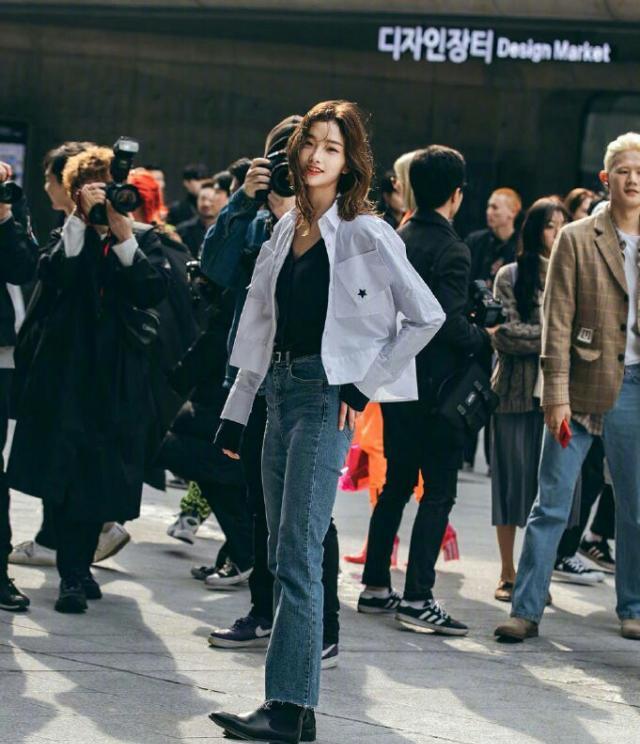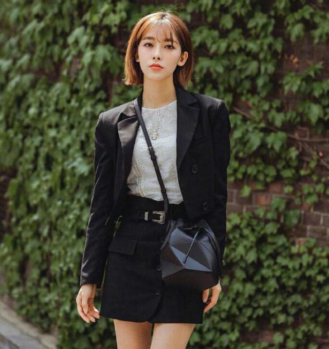 西装在人们的印象中一般都是在正式场合才穿的,给予西装的印象就是呆板严肃的。白色的打底上衣,黑色的超短裤搭配,一个精致的腰带就把腿拉长了,也就是小姐姐们经常说的大长腿。就是黑色的西装外套的搭配才更加具有了韩范,一件黑色的外套整个look瞬间就变的时尚了起来。