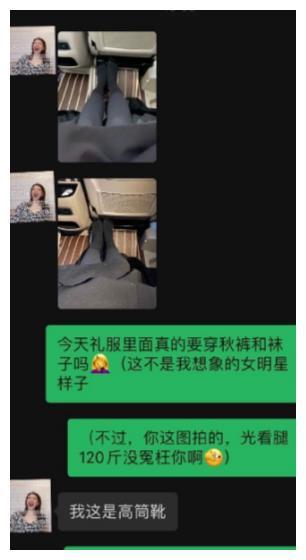 江疏影以性感的黑色礼服出席活动,没想到的社群小编却在事后曝光对话截图,只见江疏影直接把黑色礼服裙摆往上撩,直接曝露裙下风光,里面居然深灰色卫生裤,毫不客气地打破粉丝对江疏影的气质美人滤镜,小编更忍不住猛亏:「今天礼服里面真的要穿秋裤和袜子吗?这不是我想像的女明星样子。 」