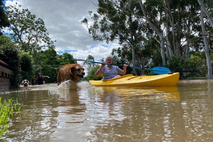 3月9日,居民驾船行驶在澳大利亚悉尼郊区温莎的洪水中。新华社/法新