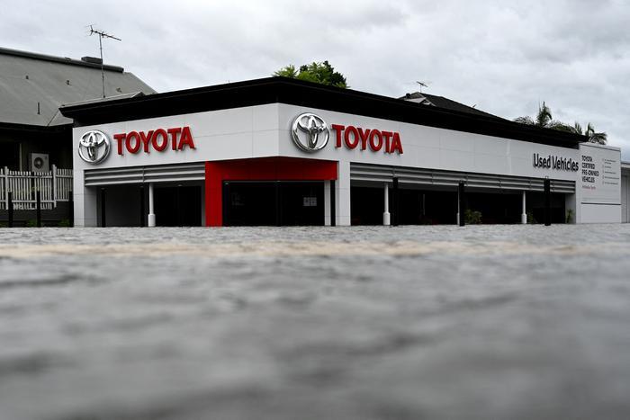 这是3月9日在澳大利亚悉尼郊区温莎拍摄的一家洪水中的二手车店。新华社/法新