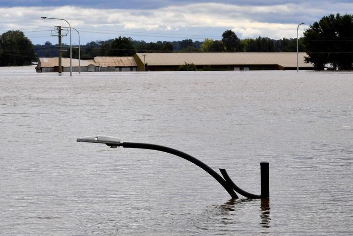 3月9日,在澳大利亚悉尼郊区温莎,一盏路灯几乎被洪水淹没。新华社/法新