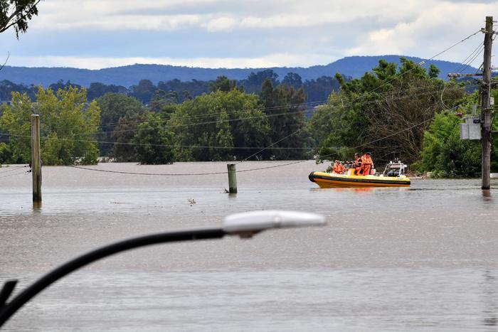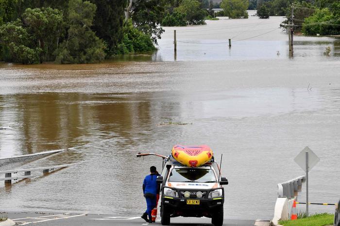 3月9日,应急人员在澳大利亚悉尼郊区温莎查看洪水的情况。新华社/法新