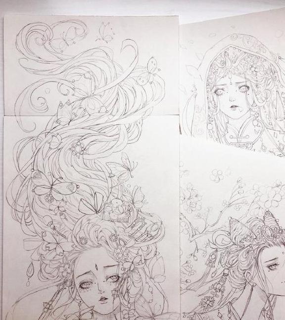 还有许多古风人物,每幅画都很美。让我们来看看古风人物手稿。