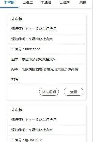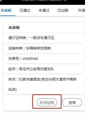 申请运输类型为《道路救援类》、《车辆维修检测类》等必须到现场后才能提供证明材料的通行证时,当天内必须补充相关证明材料。