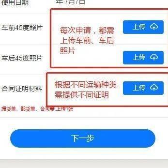 如《车辆维修检测类》、《应急救援类》等,需到达现场后,才能提供证明材料,所以可以先暂时不上传证明材料。但务必于当天补齐相关证明材料(详见下方《证明材料补充》)。如未补齐相关材料,则计入失信名单一次。如计入失信名单三次,以后不允许在申请该车辆任何类型通行证。