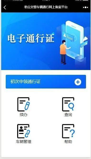 该平台主要包含:初次申领通行证、续办、查询、车辆管理、帮助五个主要功能。如下图: