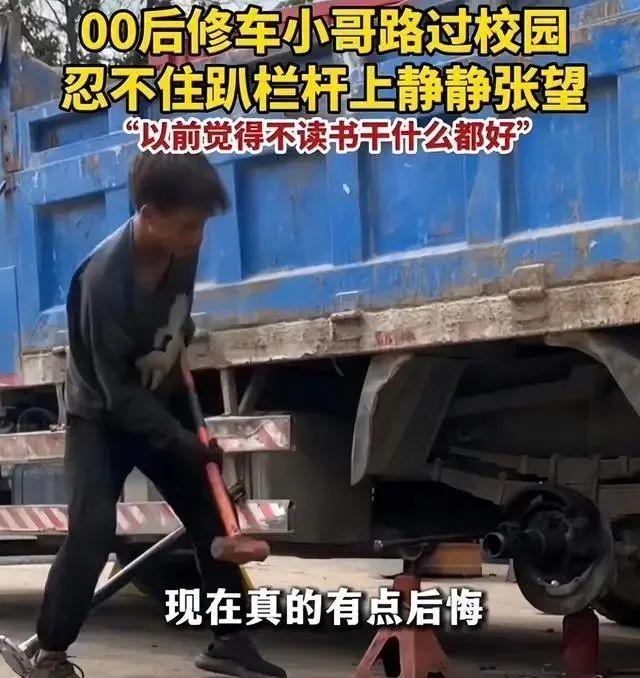 “不读书你后悔吗?”,00后修车工遥望校园,一番话让人唏嘘不已!