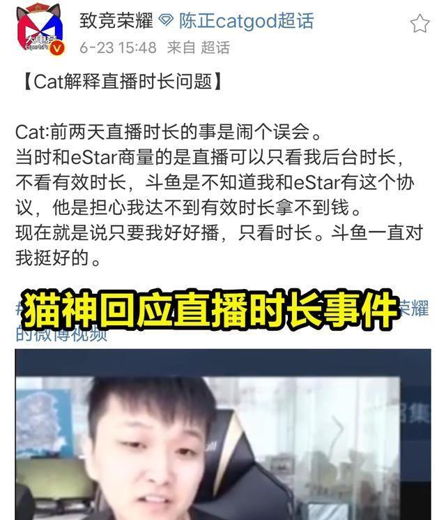 猫神回应“直播时长”事件:我与estar私下有协议,斗鱼误会了!