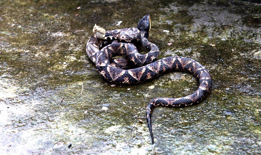 饲料喂养:五步蛇为吃肉的动物,一般吃活体或新鲜死体。一般春季每月投喂2到3次,夏季月每月投喂3到5次,秋季每月投喂6到10次,过冬前需要饱食,可配合精肉填喂,每次的投喂量至少达到蛇自身体重的三分之一。