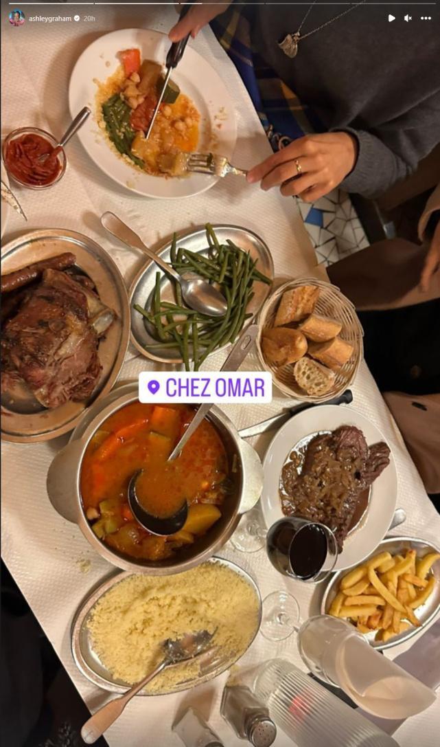 阿什利倒也不是不运动,从她分享在社交媒体上的健身画面看,训练起来也是很拼的。但之所以不瘦,那就是她吃得“太多”。试问哪位模特赶在时装周期间如此大快朵颐,又是碳水又是高盐的,但阿什利就是如此随性,还特意晒了出来,生怕别人不知道她享用到了一顿大餐。