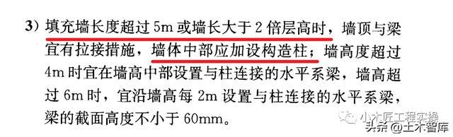 1.填充墙墙长超过5m或墙长大于2倍墙高时,墙体中部应加设钢筋混凝土构造柱;