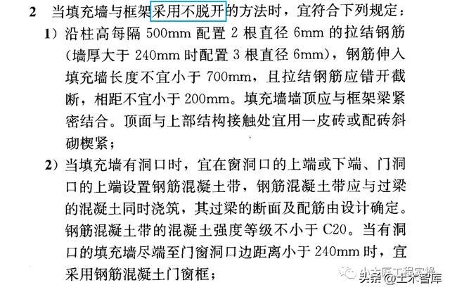 另外需要注意的是,填充墙根据与混凝土结构的连接方式分为两种:脱开方式(柔性连接)和不脱开方式(刚性连接),采用不同的连接方式是需要参照相对应的规范依据。