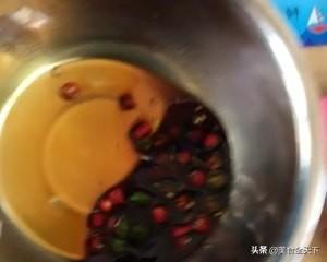 步骤三:调好的料汁是这样子的。青红椒圈是要放进去让辣味融进料里。熬至好的大料水,选用其中的100克左右就可以了。倒入其他料中,搅拌均匀。
