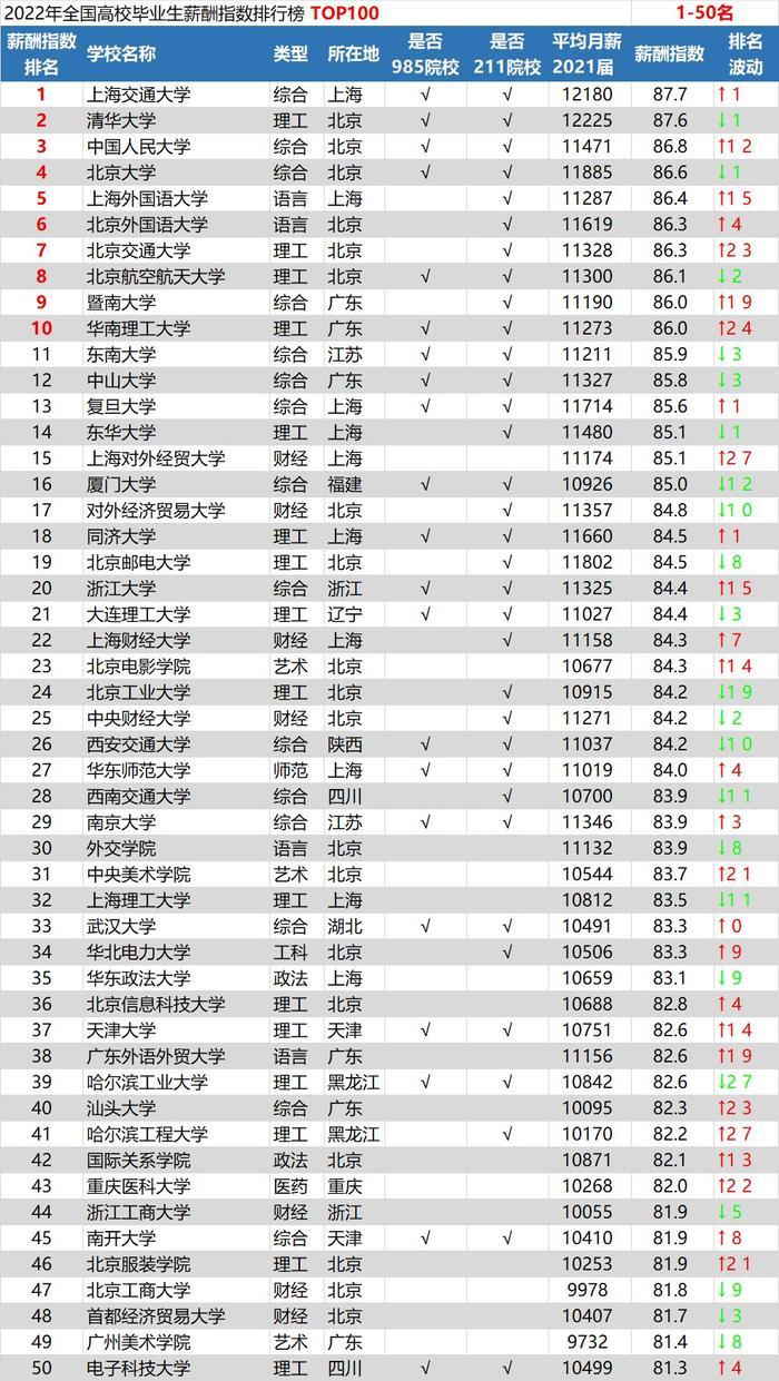 从这一榜单也就不难理解大家为何都想去名校读研了吧,薪酬指数前十全为985/211高校。